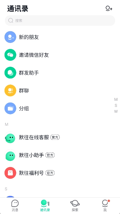 1、启动默往app,准备好友手机号、默往号或二维码