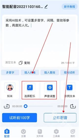 点击立即配音按钮生成音频文件。