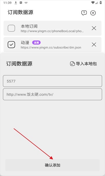 4、输入数据源名称与地址(示例地址:http://pandown.pro/tvbox/tvbox.json)