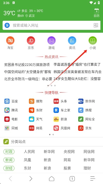 1. 首页右上角定位小说专区入口,点击进入书库