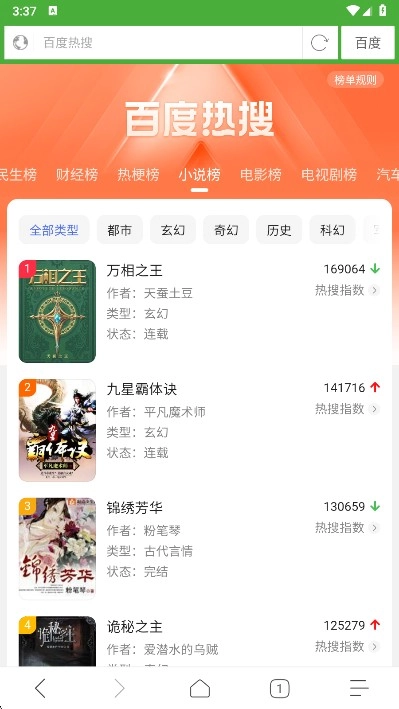 2. 浏览热搜小说榜单,实时更新热门作品