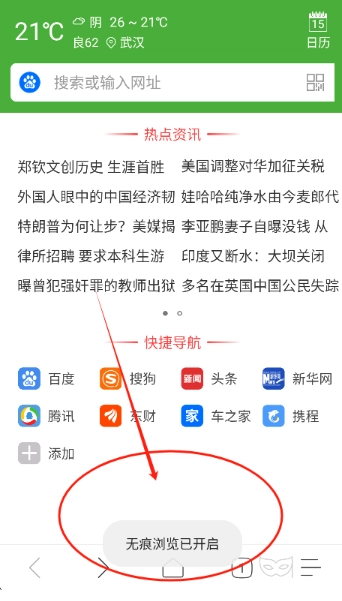 1. 访问网页时点击工具栏无痕图标
