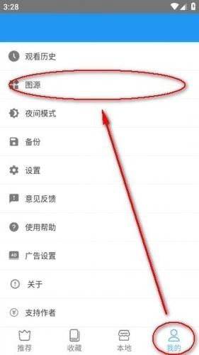 1、阅读界面顶部可切换不同图源