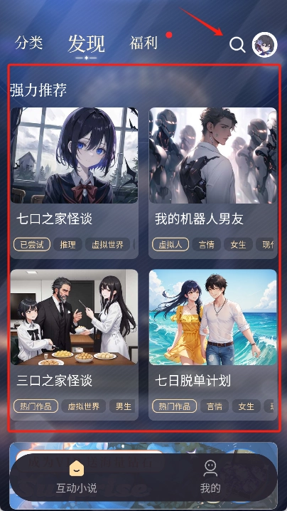 启动手机版app,浏览或搜索故事。