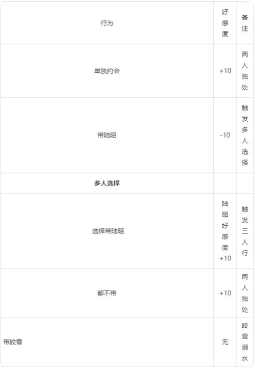 提示:白彬和陆昭会对你发动心动攻击,偏向谁就能获得谁的好感度。