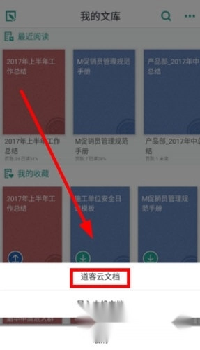 2. 在底部菜单选择【道客云文档】进行同步