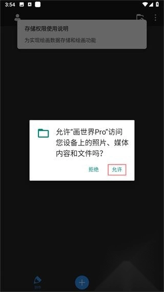 1. 创建新画布后开启存储权限