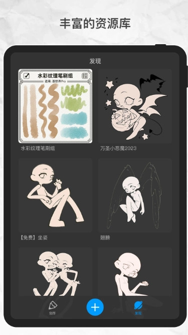 1. 新建画布:点击底部"+"按钮,选择预设尺寸或自定义分辨率