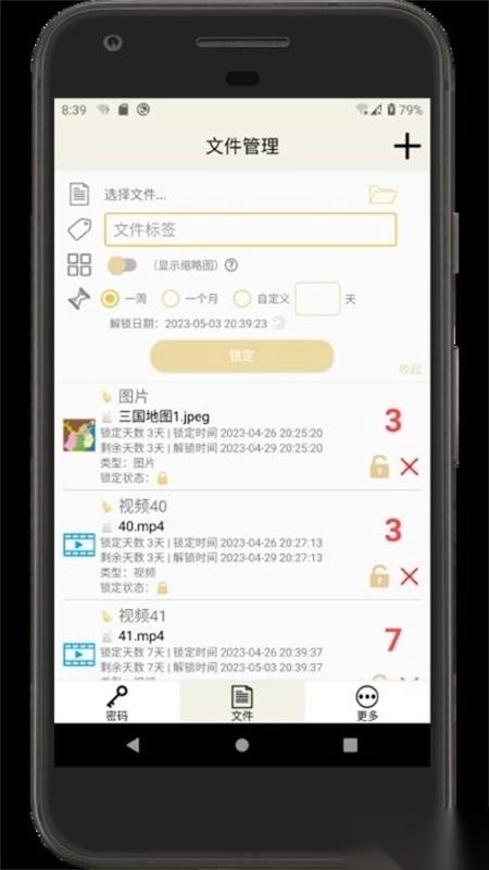 5、允许自由添加和管理锁定文件,设定期限后自动解锁查看。