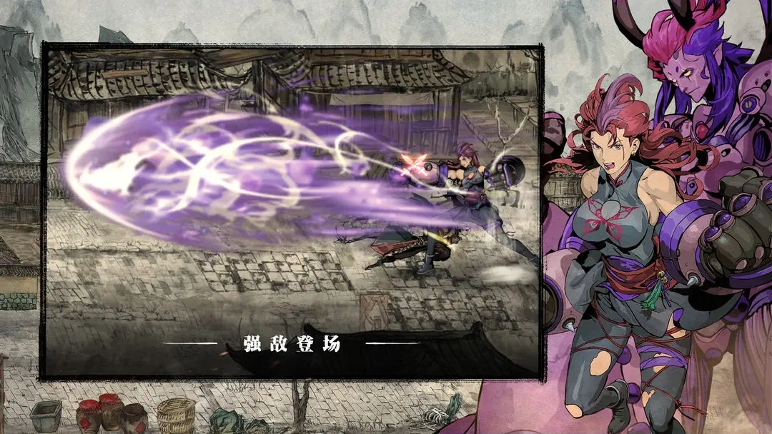 动态水墨渲染技术实现笔触流动效果,雨雪天气墨迹产生晕染变化。过场动画采用逐帧手绘,关键剧情插入京剧唱段。