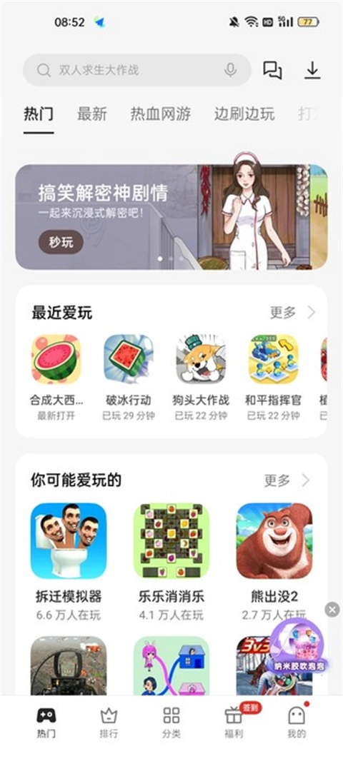 使用方式:下载软件后,在分类、热门或排行榜选择游戏,非OPPO手机需安装快应用插件,加载后即可畅玩。