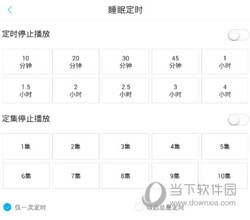 2、在“睡眠定时”界面中,可以选择“定时停止播放”或“定集停止播放”,根据需求设置即可。