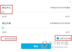 2、拖动选择跳过的时间段,可设置“用于所有专辑”或“仅用于此专辑”,点击“确定”。