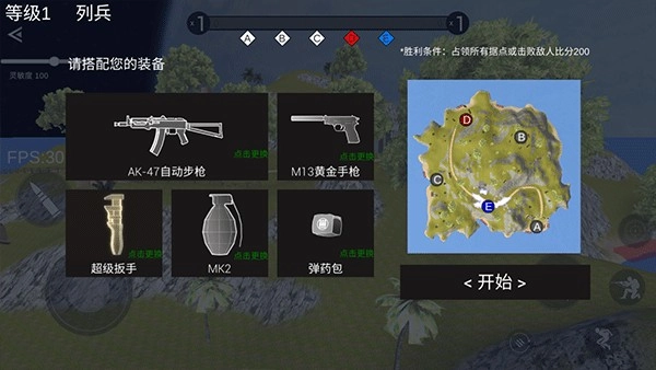 2、接着选择关卡地图、设置获胜比分、出生时间、难度等后点击开始
