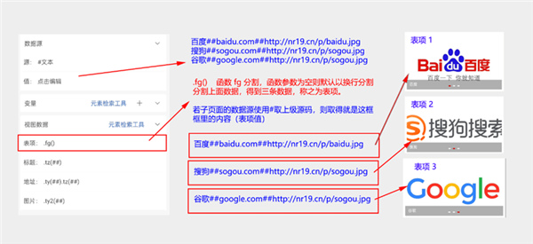 E2 还能进行数组操作,在M浏览器里轻站或虫子获取列表的函数就需要获取数组。为了更容易了解并使用函数,一般处理文本的函数均以 t 开头,比如取文本左边的 tz , t = 文本,z 是左的拼音头,然后就能知道取文本右边函数为 ty 了。 处理数组的函数 以 i 开头,如 .ij(aaa) ,j = 加, 往数据中加入一行数组,值为 aaa 。