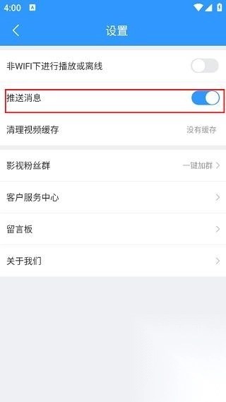 3. 然后在打开的"设置"窗口中,找到"推送消息"选项,最后将其右侧的开关按钮关闭即可