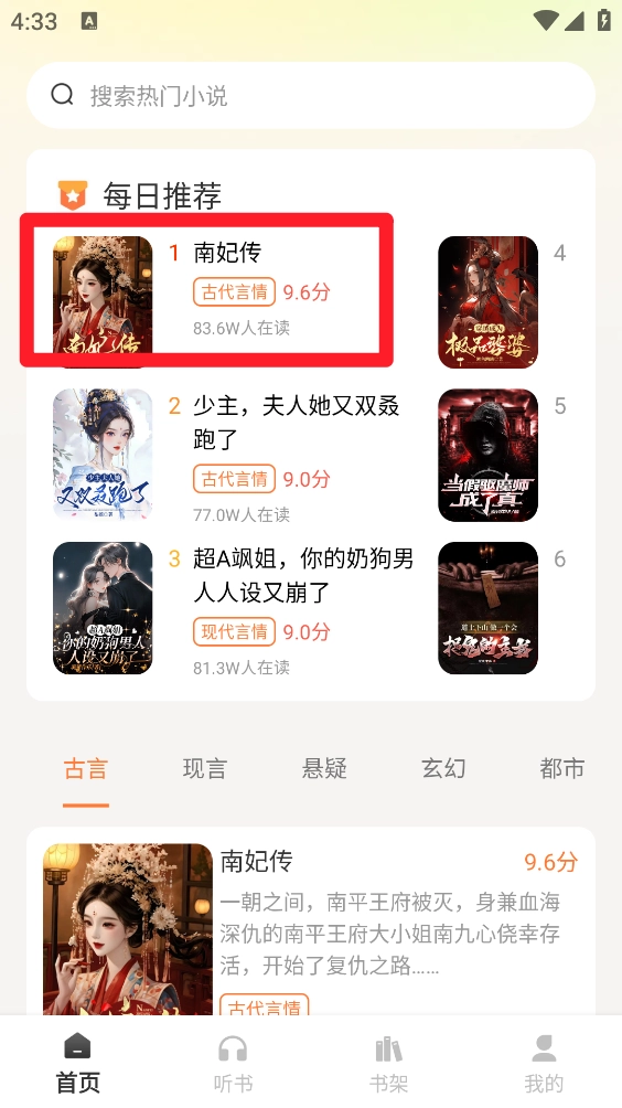 1.在主页选取心仪小说