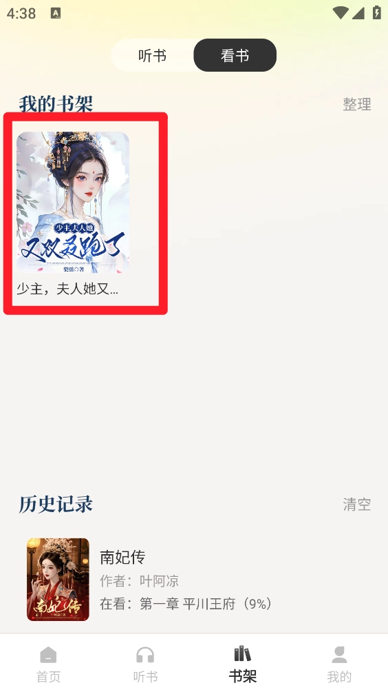 3.返回主页进入"我的书架"查看收藏