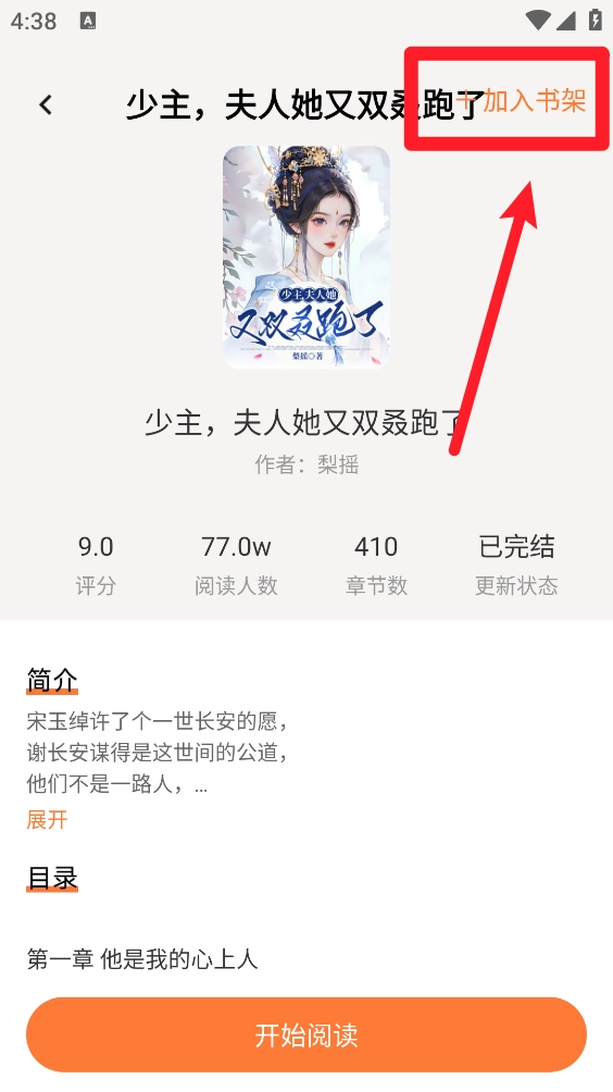 2.进入详情页点击右上角"加入书架"
