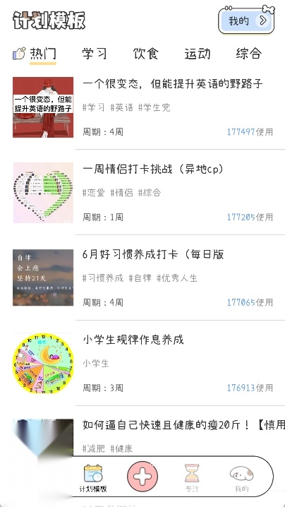 4、计划模板库的定制入口位于右上角,提供学习、运动等场景的深度规划。定制服务需付费开通,适合需要强效监督的用户。