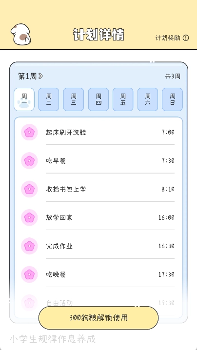 2、创建多个计划时,系统会解锁云端养宠功能。每次成功打卡可获得狗粮,用于维持小狗的饱腹、清洁与健康数值。持续完成计划是宠物成长的关键。