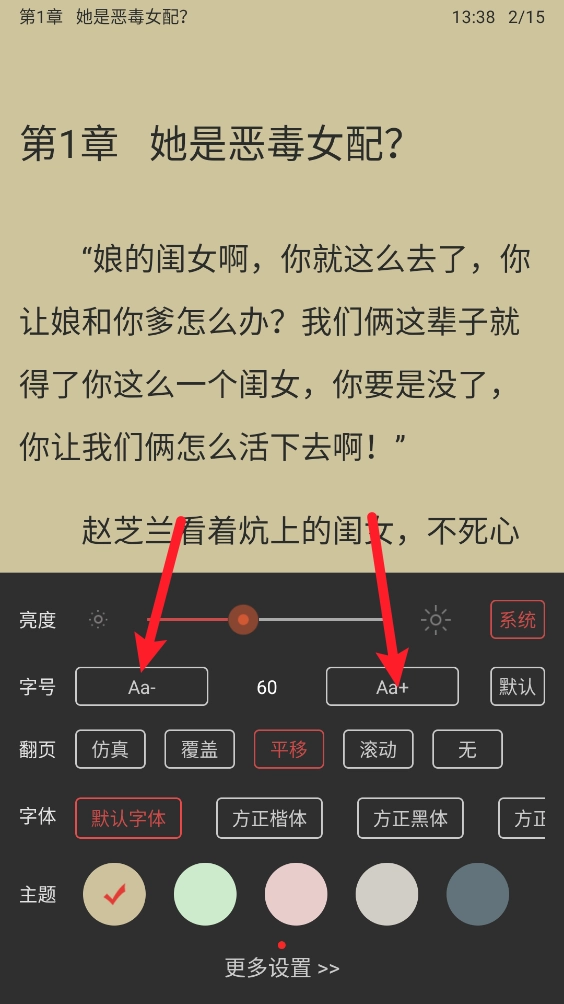 3. 屏幕中央调出设置菜单,可调整字号/背景/翻页模式