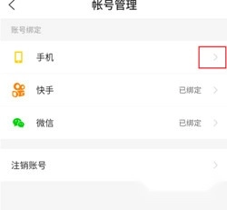 3、在账号管理页面点击"手机号"旁箭头,输入短信验证码完成解绑。