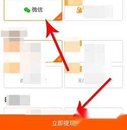 2、选择提现方式与金额后点击"提现"按钮。