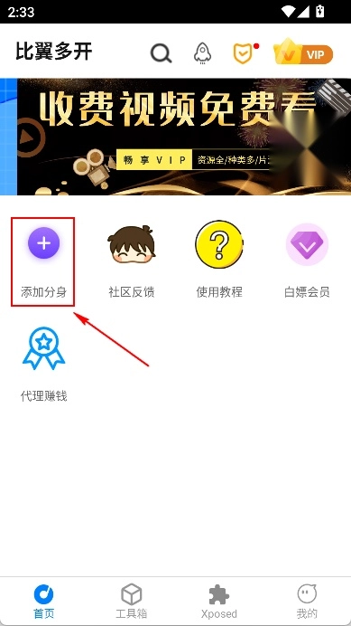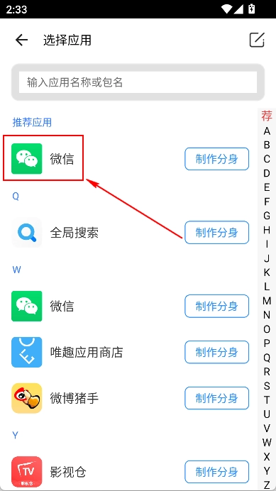 1.将目标APP添加到比翼多开中,确保已创建分身。