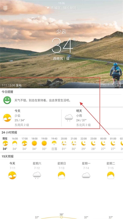 6、汇总短期提醒和15天预报,清晰呈现整体趋势。