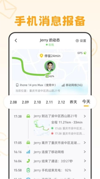 第一时间接收亲友出行与手机动态消息;
