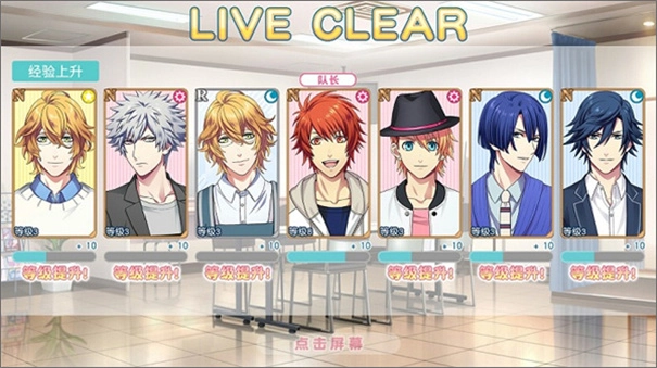 通关提升偶像经验值和亲密度,全选心仪偶像组队可快速增加亲密度。