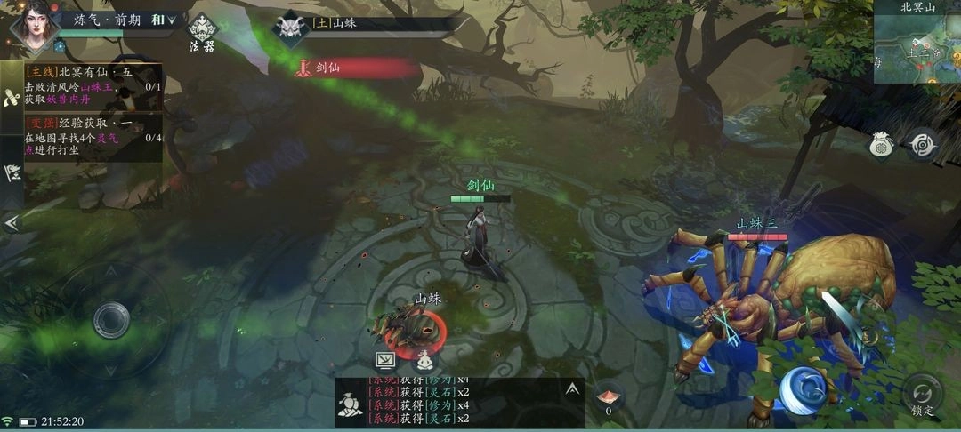 修为满溢时头像显示红点,突破后正式踏入修仙路。主线奖励技能书解锁"破风三决",此招可轻松击败山蛛王获取突破素材。