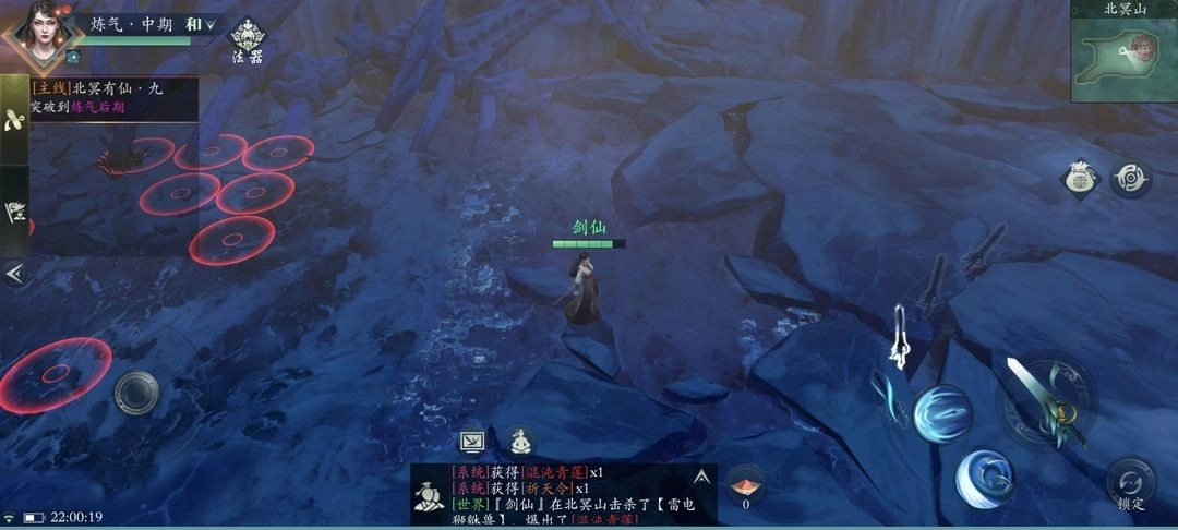 渡劫重生后降临北冥山,寻找头顶红标NPC接引。灵气点是提升修为的关键,打坐吸收可突破境界。地图迷雾需通过"观山海"清除,优先激活便于探索。