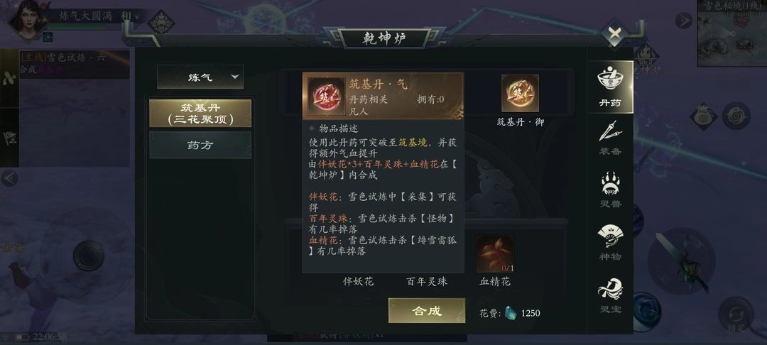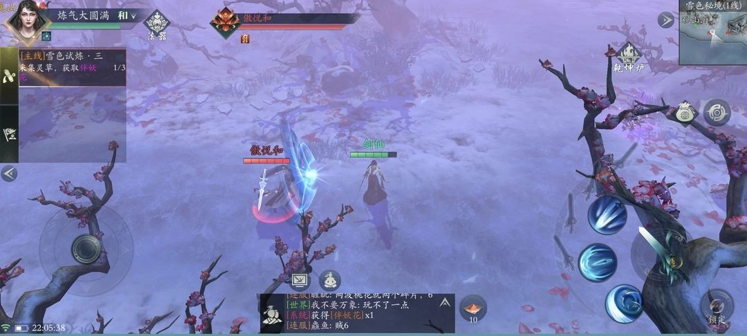 生活系统引导采药烹饪,PvP机制初现需击杀其他修士获取材料。跨服战斗存在装备掉落风险,雪色试炼终点狐狸妖王常有玩家争夺。