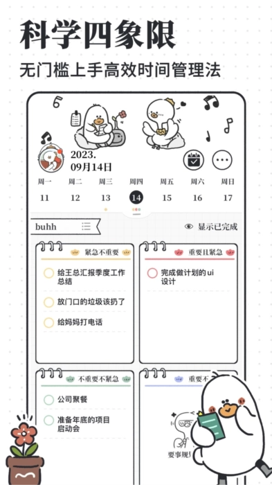 【四象限管理】零学习成本掌握高效时间管理法,长按拖拽即可设定任务优先级,让生活条理分明。