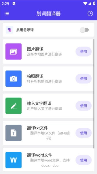 划词翻译器是一款屏幕翻译工具,支持多语言互译,包括英语、日语等150多种语言。用户通过简单操作,如划词或截图,即可快速获取翻译结果。该应用具备离线功能,无需网络也能工作,适合旅行或学习场景。悬浮球设计让翻译更便捷,可在任意界面调用。翻译准确度较高,但偶尔在复杂句子中可能出现偏差。文件翻译支持TXT和PDF格式,方便处理文档。历史记录功能帮助用户回顾查询内容,提升学习效率。整体界面简洁,减少干扰,专注于核心翻译任务。