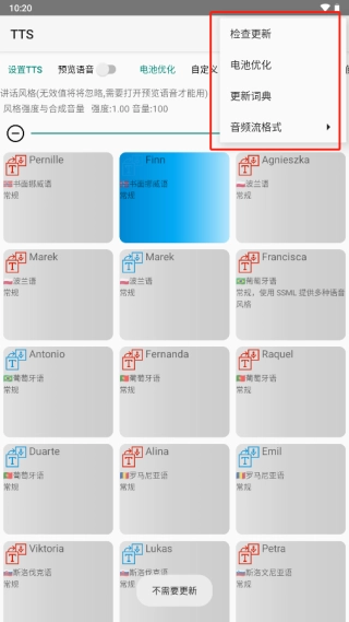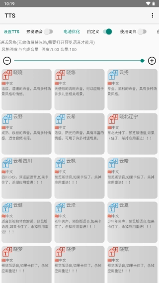 7、在TTS语音引擎设置发音风格