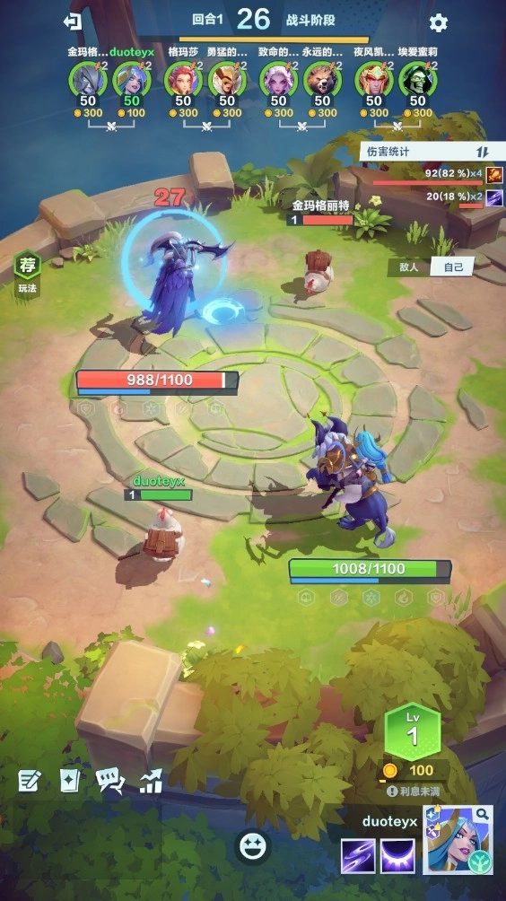站位布局关键:前排放置高防御英雄吸收伤害,后排输出避免过早死亡。