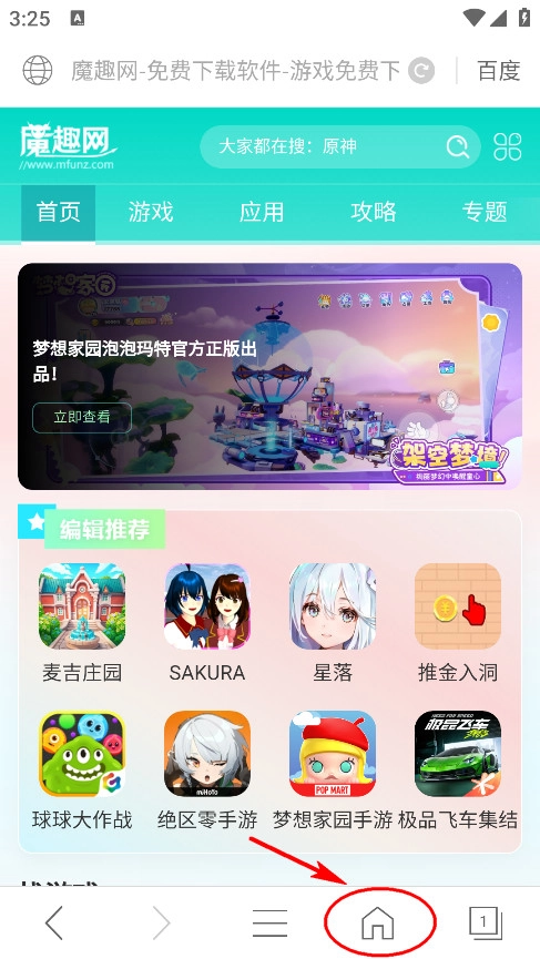 2. 底部房屋图标返回首页,长按可刷新页面