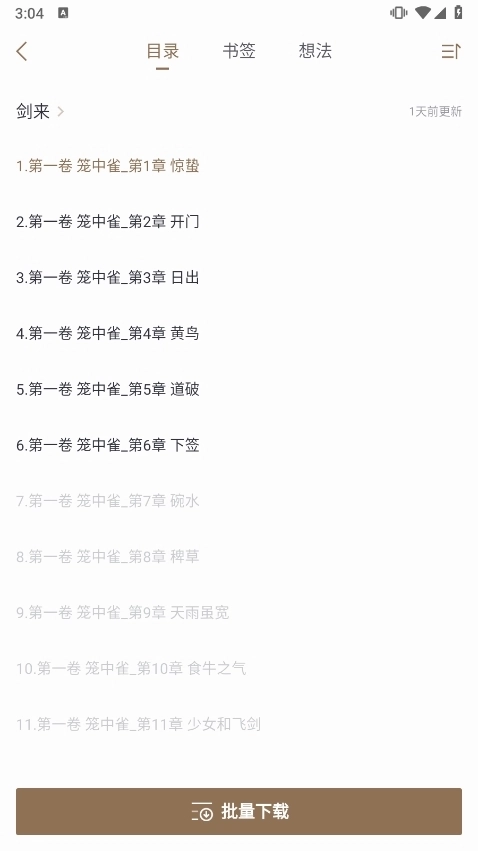 章节列表支持关键词搜索,输入数字可跳转至对应章节。历史阅读记录按时间倒序排列,最多保存200条记录。书签功能可添加颜色标签,重要章节支持添加文字备注。目录页显示章节字数统计,超过5000字章节有长文提示标识。