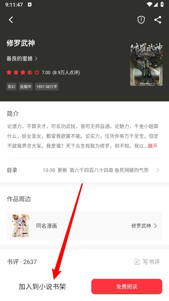 打开目标小说,点击免费阅读进入内容页。
