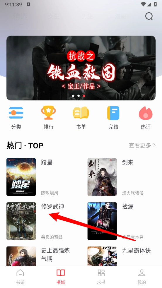 书城中选择目标小说资源。