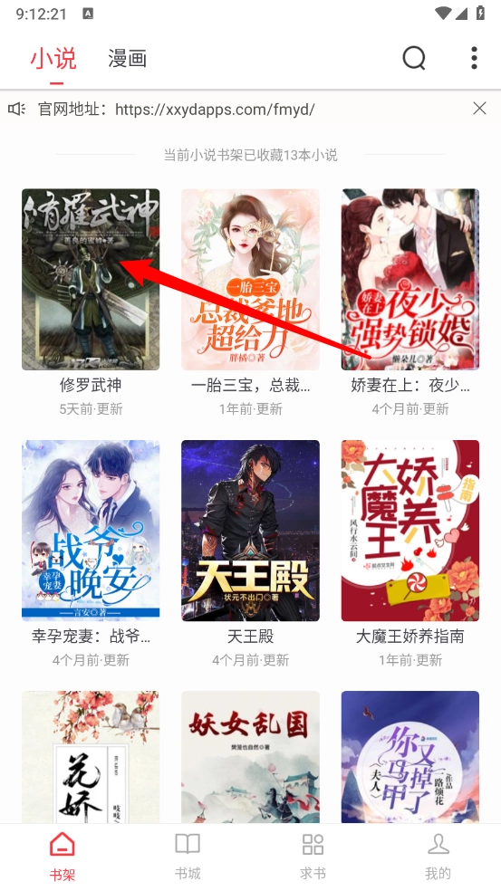 进入书架页面,选择目标书籍。