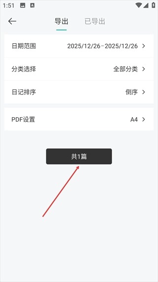 4. 设置日期范围、分类和格式等参数,执行导出操作。