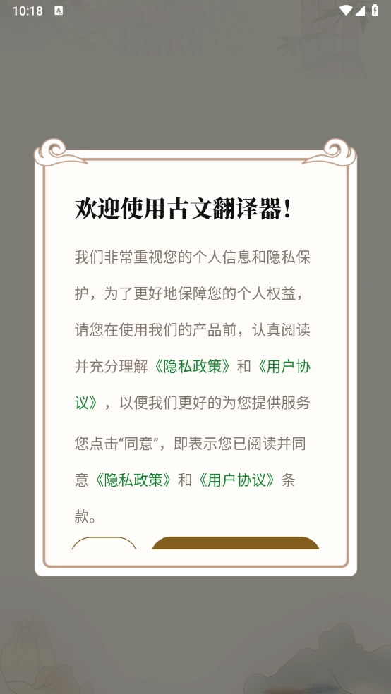 1. 下载安装古文翻译器app,查看用户协议和隐私政策。