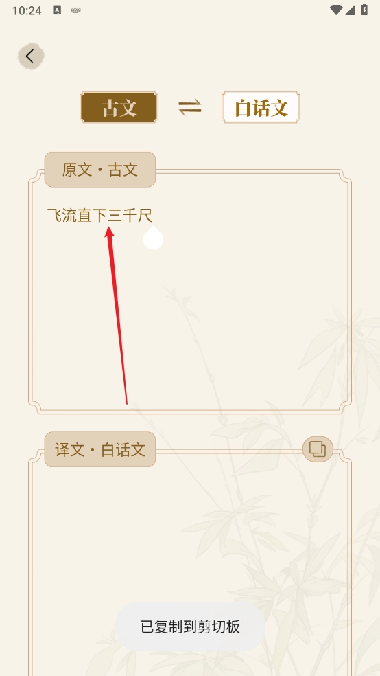 3. 以文本为例,输入古文内容,点击翻译按钮获取结果。