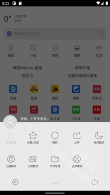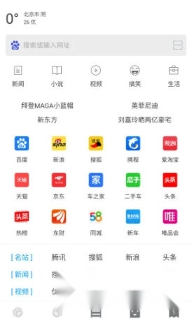 内置网址导航支持自定义编辑,包含20+热门站点直达