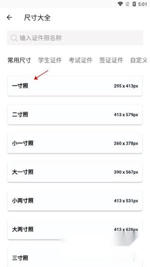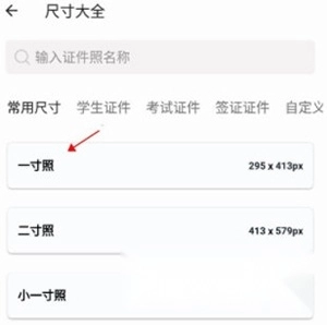 2、然后选择自己需要的尺寸照片,小编就以一寸照为例。