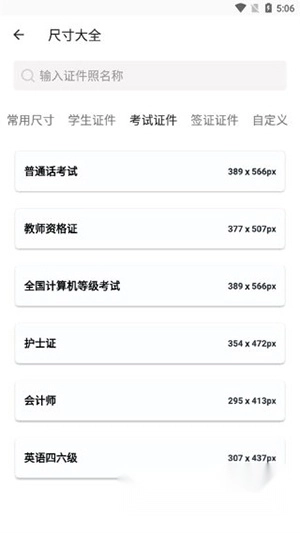 证件照尺寸:一寸、小一寸、二寸等常见规格;尺寸修改功能适配不同需求;适用英语四六级、公务员考试等场景;底色更换支持红、蓝、白及自定义颜色。